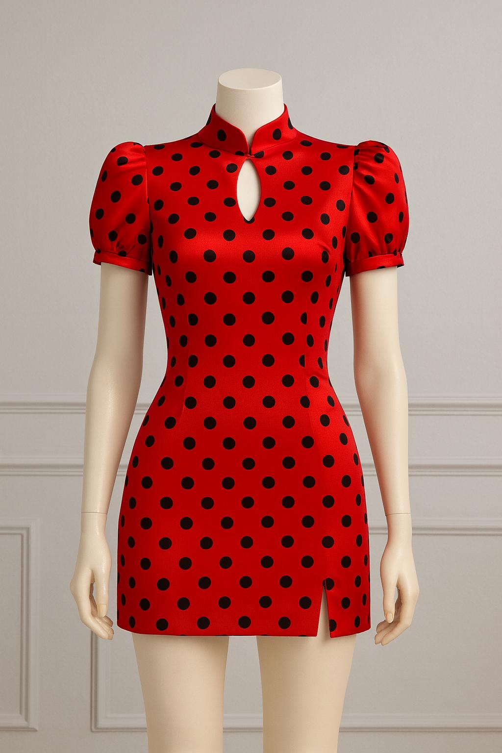 La Rouge Mystère is a statement silhouette designed to sculpt the body and command attention. Crafted in a bold polka-dot satin with a structured fit, this piece balances sensuality with elegance.
